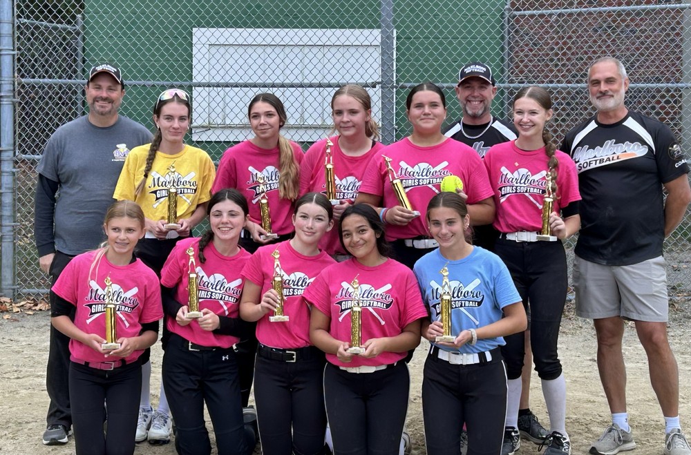 The Pink Panthers coached by Mike Cabral, Dan Merriem and Matt Williams won the Fall Ball major league championship on Saturday 10/11 defeating the Green Machine coached by Gary Salamone. The pink team was led by Kalina Martel's 2nd homerun of the season a 3 run shot. Pitching was shared by graduating player Emmy Ryan who played in her last game for Marlboro Girls Softball and Kalina. Also graduating from the program and filling in for the pink team was Taylor Cronis. Good luck to Emmy and Taylor its been fun watching you play all these years!!