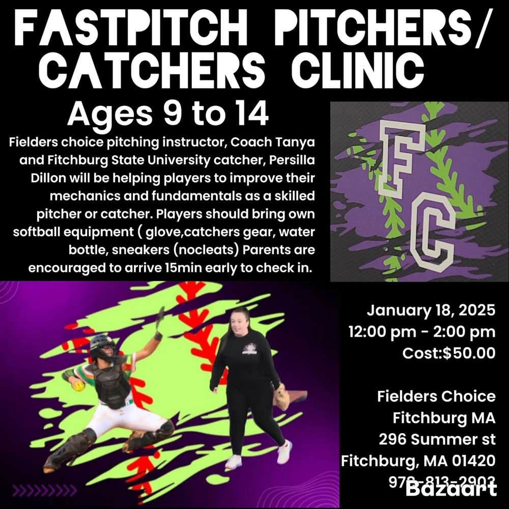 Catchers will be focusing on blocks, agility, framing, throwing and more. Pitchers will be working on mechanics, targeting, strength, etc. The clinic will run on Saturday January 18th from 12 to 2 at Fielders Choice, 296 Summer Street, Fitchburg.